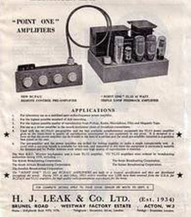 Yet another company founded by a single person, Harold Joseph Leak (1907-1989), who established H. J. Leak & Co Ltd in 1934. As always, someone was needed to actually design the circuits and plan the equipment, Ted Ashley, who remained with the company until the 1960s (a pattern already seen at Marantz, Hewlett Packard, Apple, Rolls Royce, Commodore, etc.).