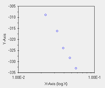 Si possono ora disegnare tre scenari per gli errori associati ad ognuno dei punti presenti nel grafico. Iniziamo dallo scenario peggiore, l'errore aumenta al diminuire del valore dell'asse X (cioe' nel nostro caso basse concentrazioni=maggior errore, non poi cosi' lontano dalla realta'). Ma per seguire meglio la realta' anche l'errore sulla misura, l'asse Y, aumenta man mano che la misura si fa incerta (misure vicino al L.O.D.=maggior errore, un altro caso non lontano dalla realta').