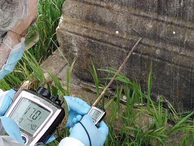 Geolocalizziamo l'opera e con una bussola marina posizionata su di una asta di legno indichiamo il nord. Lavoro necessario per il confronto delle temperature/umidita'.