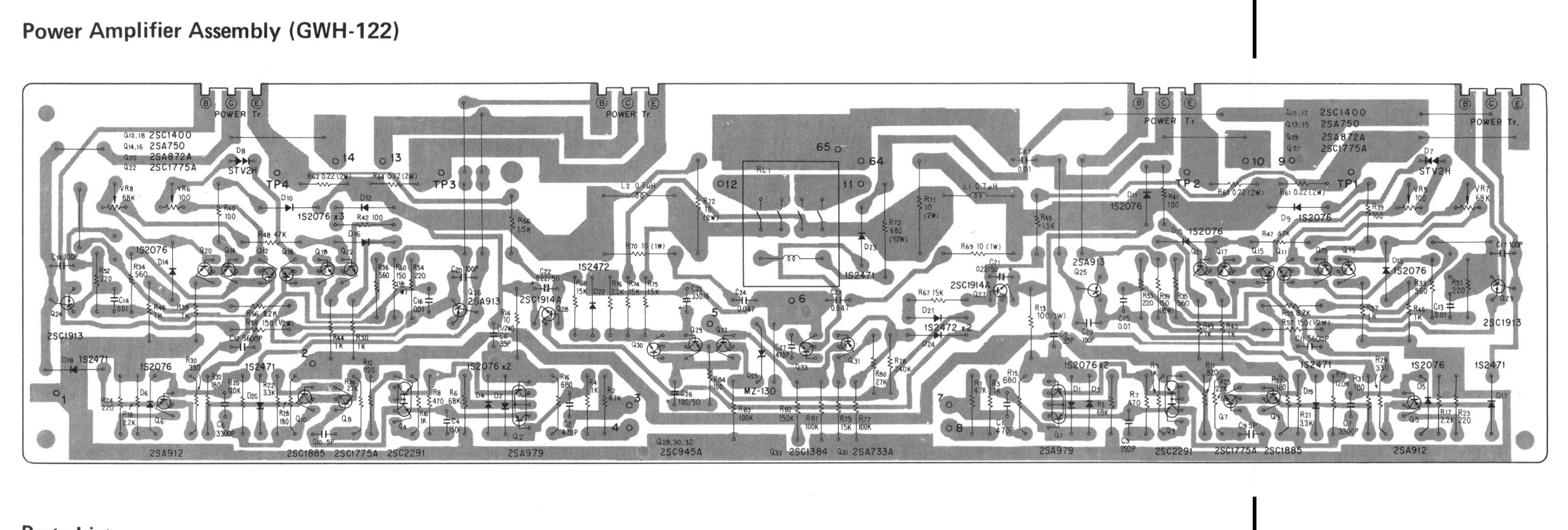 | TP1 | 2SC2525 | 2SC3280 | 2SC5200 | R75 | 15K 1/2w | . | C26 | 100μF 50V | . |